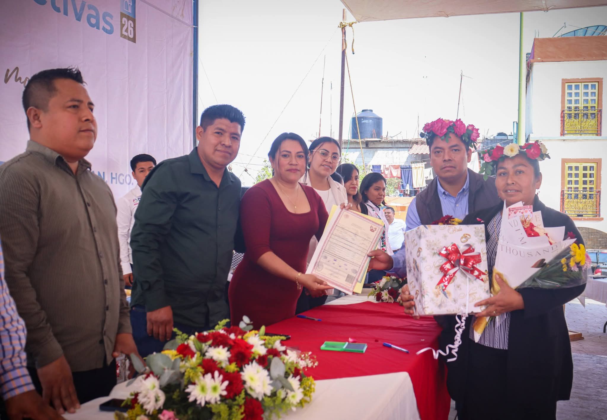 Fue en las tradicionales Bodas Colectivas 2026, donde la Presidenta Municipal, Lic. Erika Hernández Ramírez, acompañada de su esposo, así como de la Presidenta del Sistema DIF Municipal, Elideth Hernandez Ramirez, encabezó esta significativa ceremonia, junto a regidores y el Síndico Municipal.
