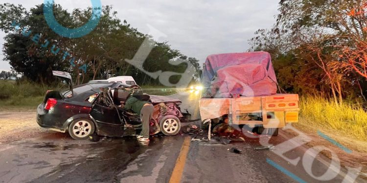 Tamuin , S.L.P.– La mañana de este miércoles se registró un trágico accidente sobre la carretera federal 70 Valles–Tampico, a la altura de la conocida curva del Relajo, donde un vehículo tipo sedán se impactó por alcance contra un camión cargado con materiales.