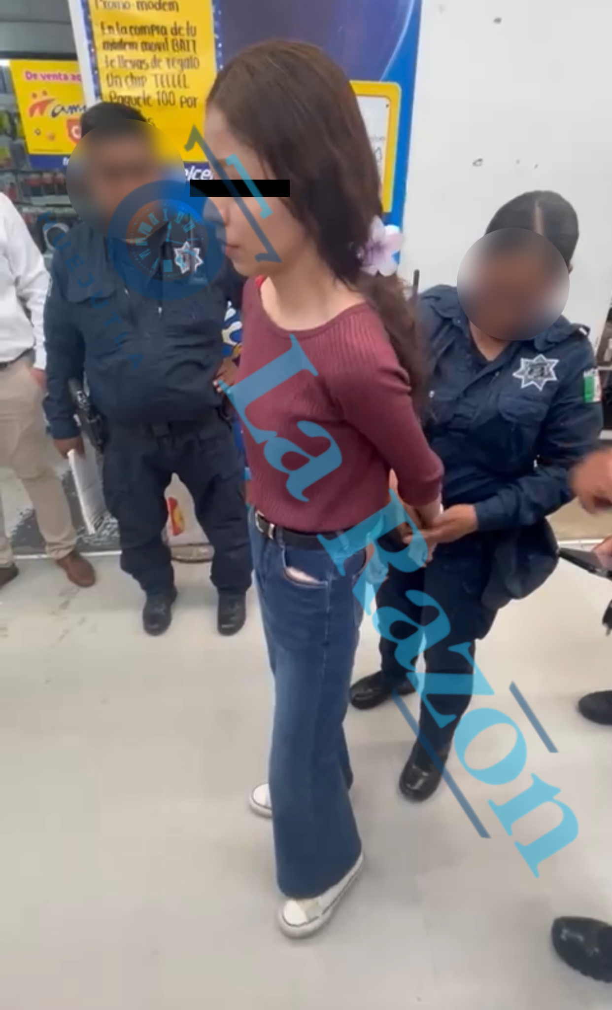 Ante el flagrante robo, el personal solicitó el apoyo de la Policía Municipal. Los oficiales arribaron de inmediato, esposaron a la mujer —identificada como Evelyn H. M., de 25 años, vecina de la colonia Dos Caminos— y la trasladaron a la comandancia para iniciar el proceso legal.