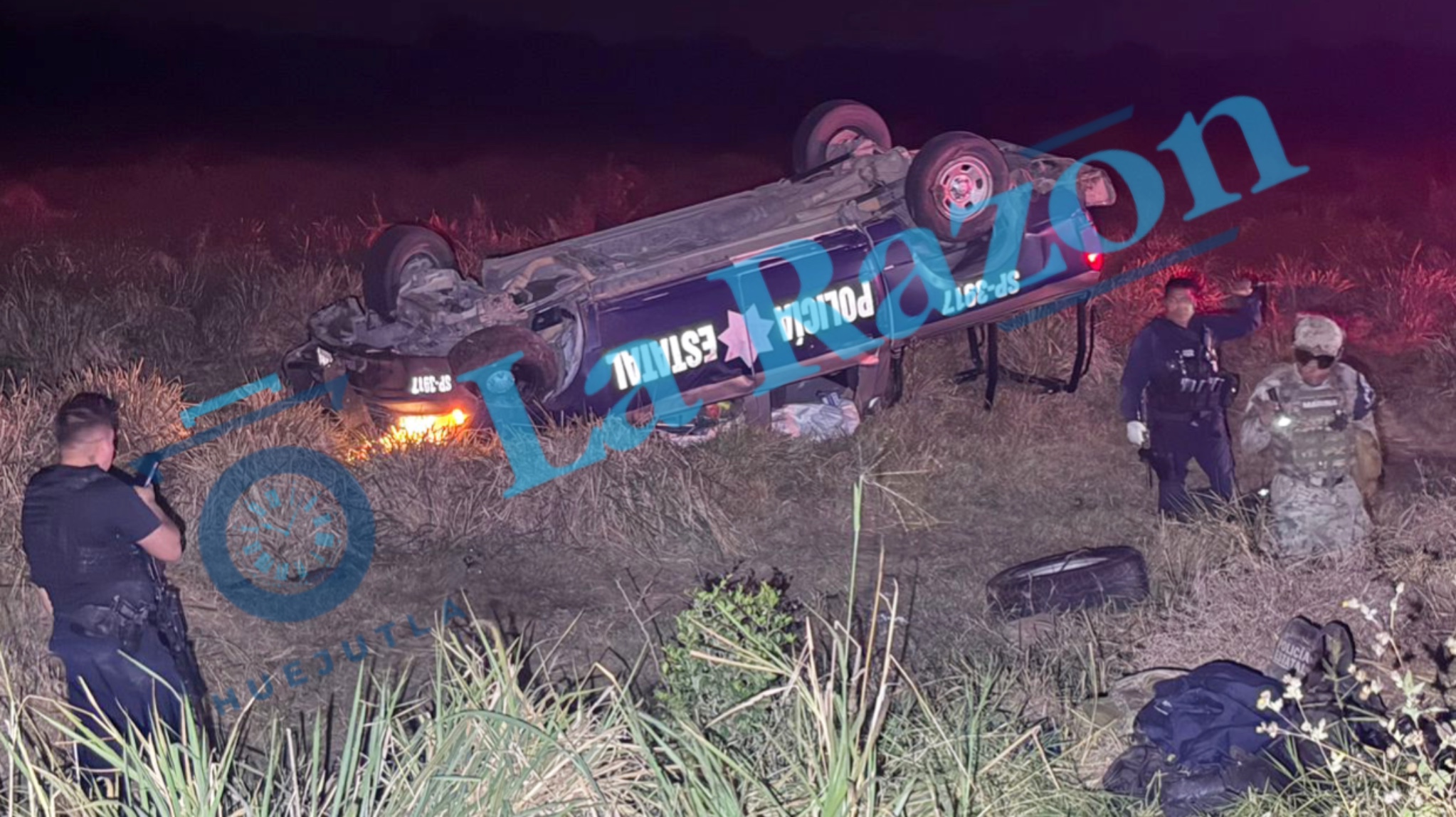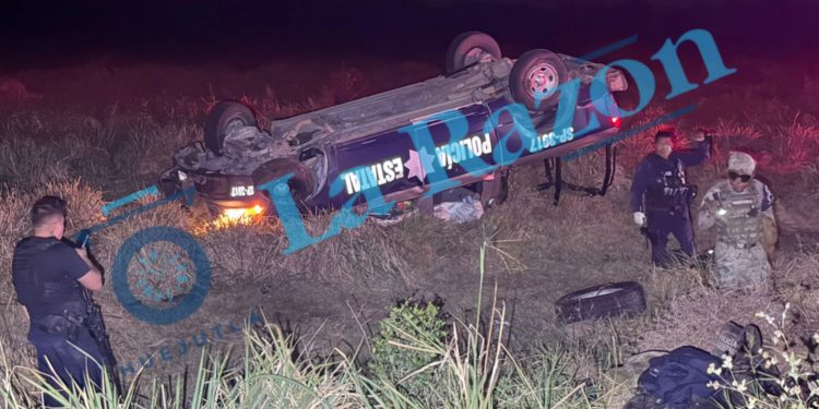 De acuerdo a los informes, el accidente se registró alrededor de las 21:15 horas del domingo cuando la patrulla marca Dodge RAM, número económico SP-3917, circulaba a exceso de velocidad y cayó a un bache, lo que provocó que el conductor perdiera el control y volcara de manera aparatosa, terminando fuera de la cinta asfáltica.