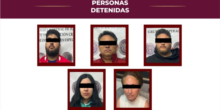 En las acciones a cargo de la Agencia de Investigación Criminal de la PGJEH que se llevaron a cabo la madrugada de este miércoles 04 de marzo de 2026, en el Fraccionamiento Explanada Sur, de Pachuca de Soto, resultaron detenidos M. L. M. E., E. D. R. M., R. Y. R. M., A. G. E., y R. E. R. G., este último empleado de Pemex.