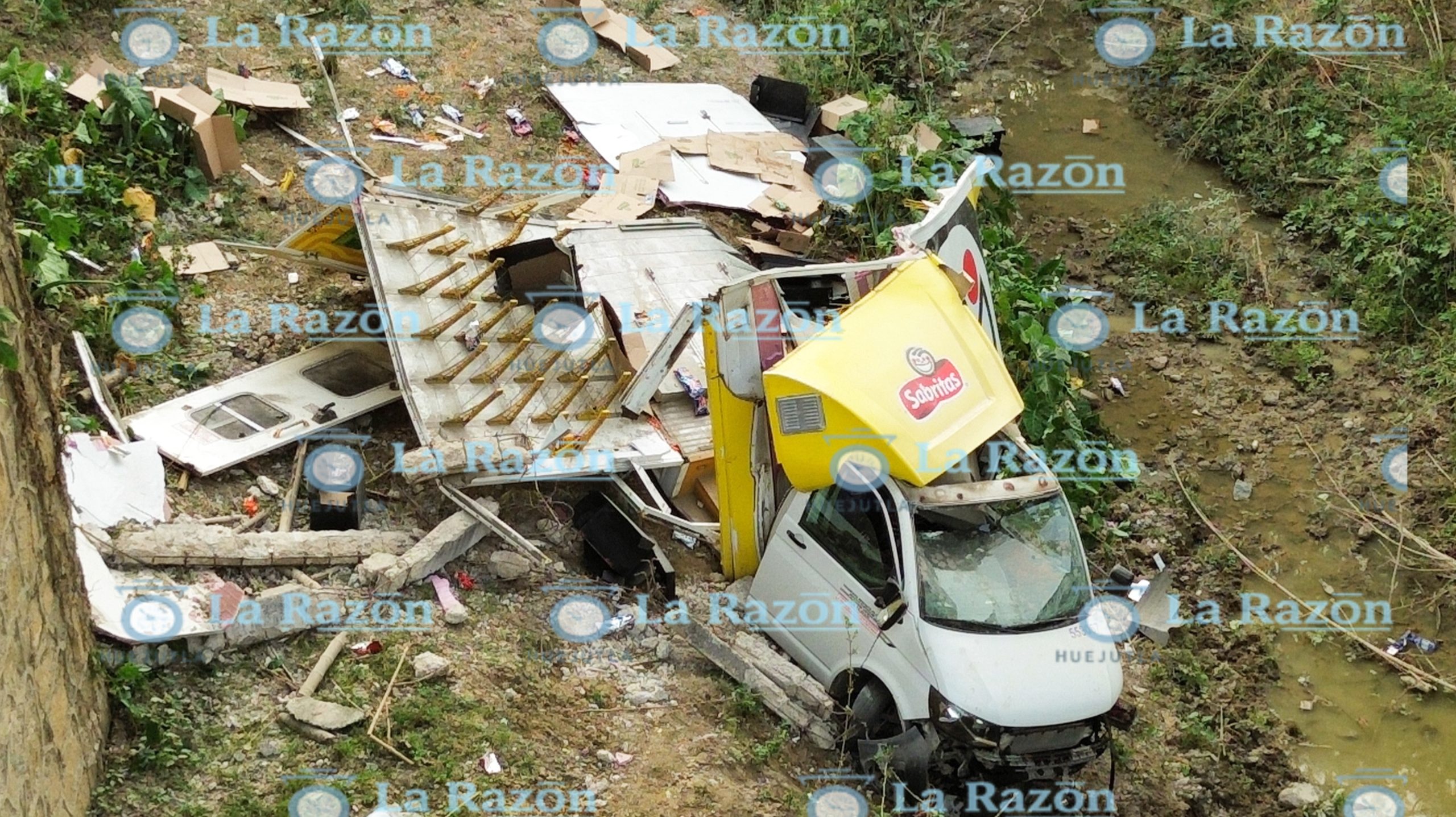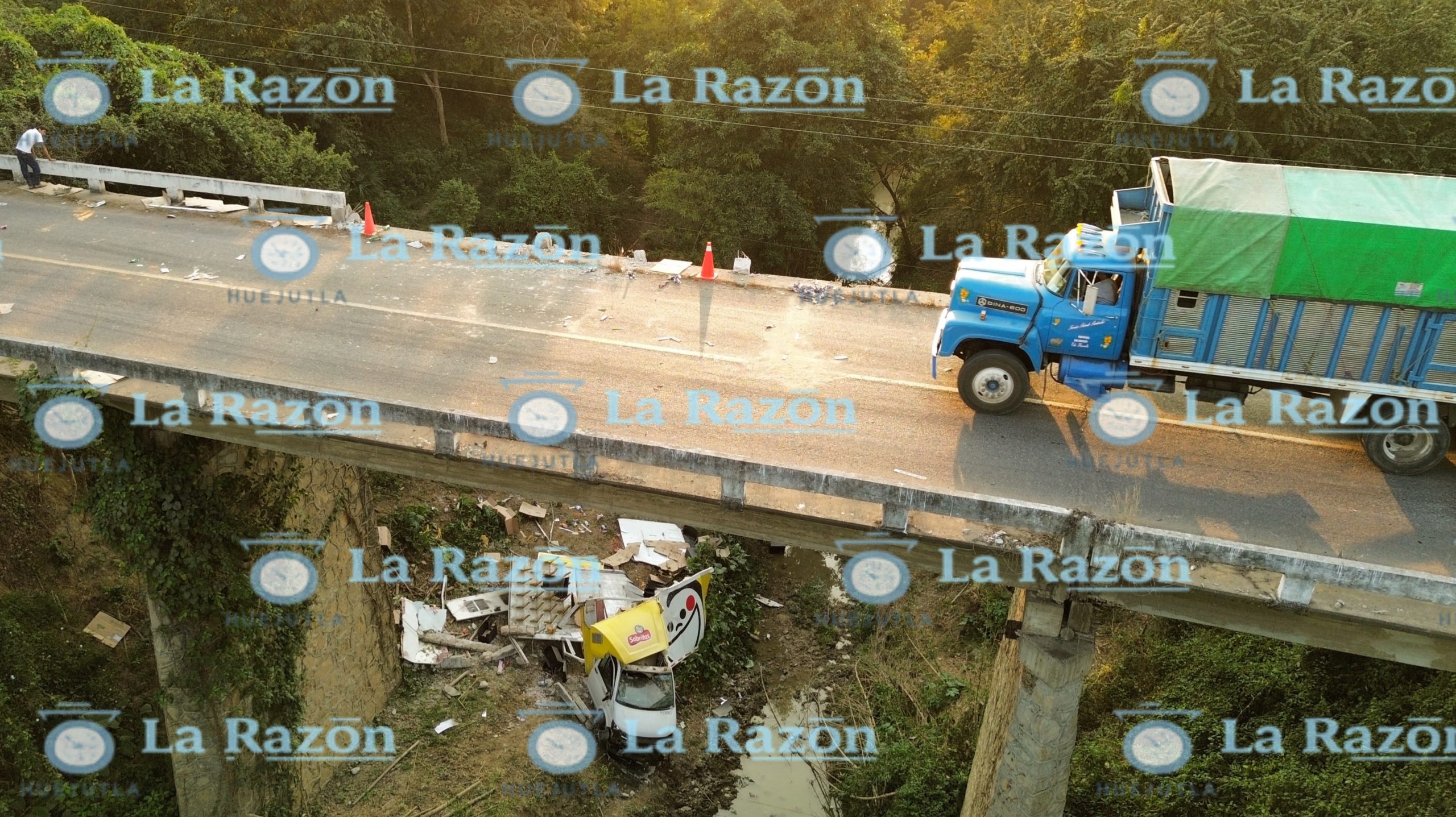 CAMIONETA DE SABRITAS CAE DE UN PUENTE TRAS CHOQUE CON TRÁILER
