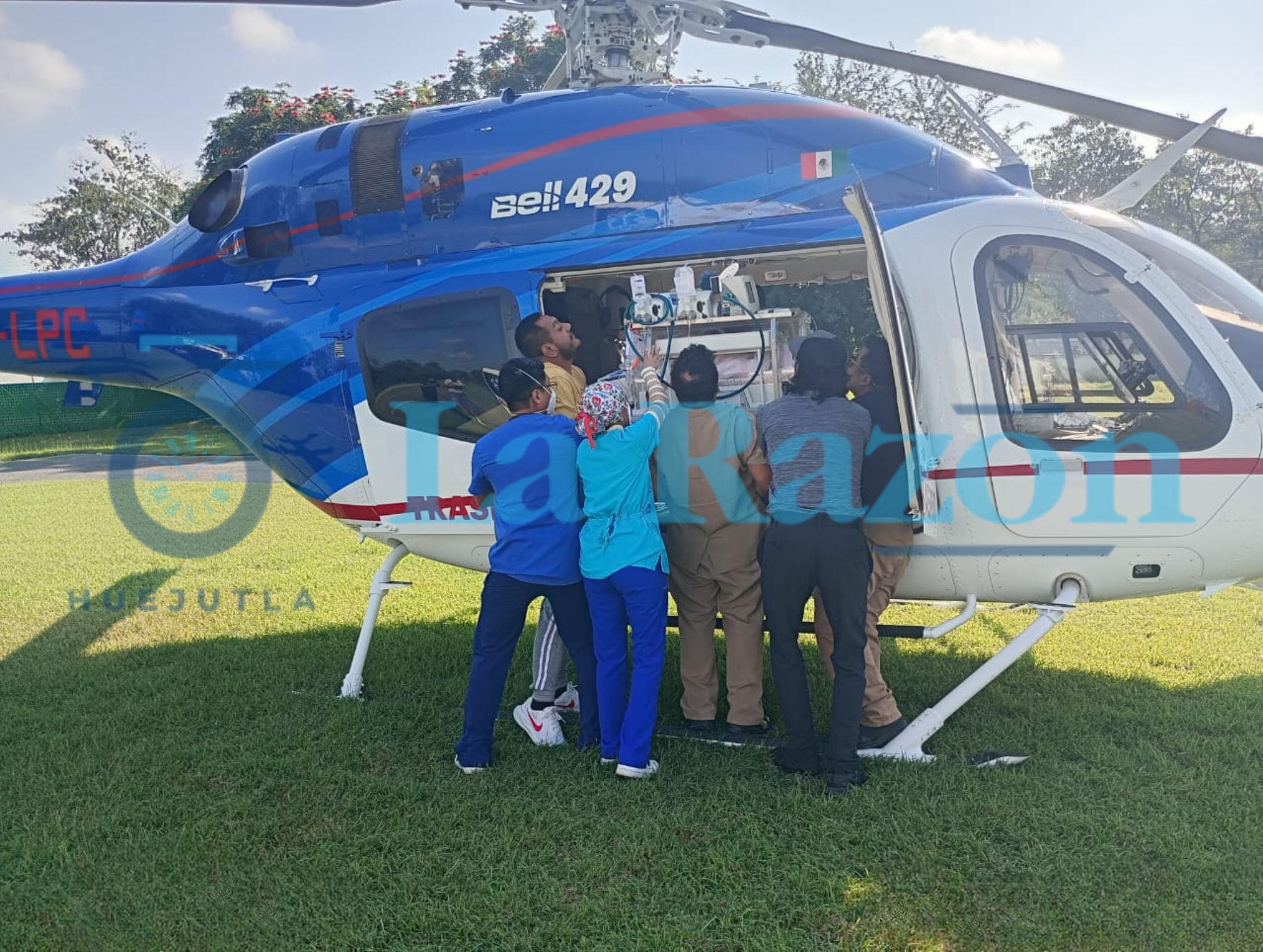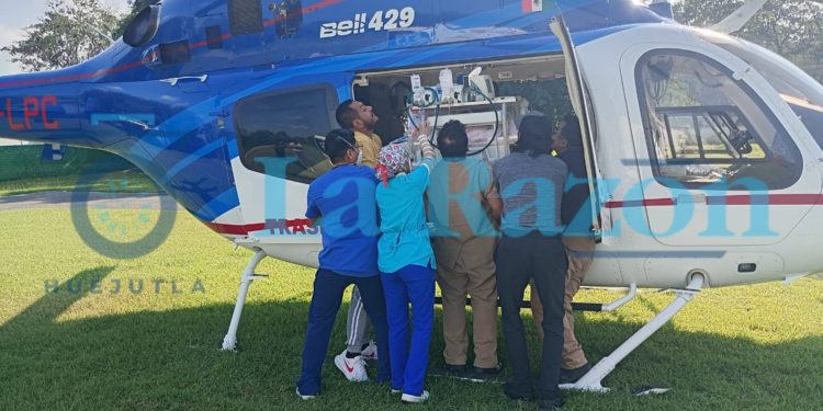 Huejutla, Hgo.- La tarde de este sábado, una bebita fue trasladada vía aérea desde Huejutla al Hospital General de Pachuca, a bordo de un helicóptero del Gobierno del Estado de Hidalgo, debido a un cuadro de neumonía viral que requería atención médica especializada.