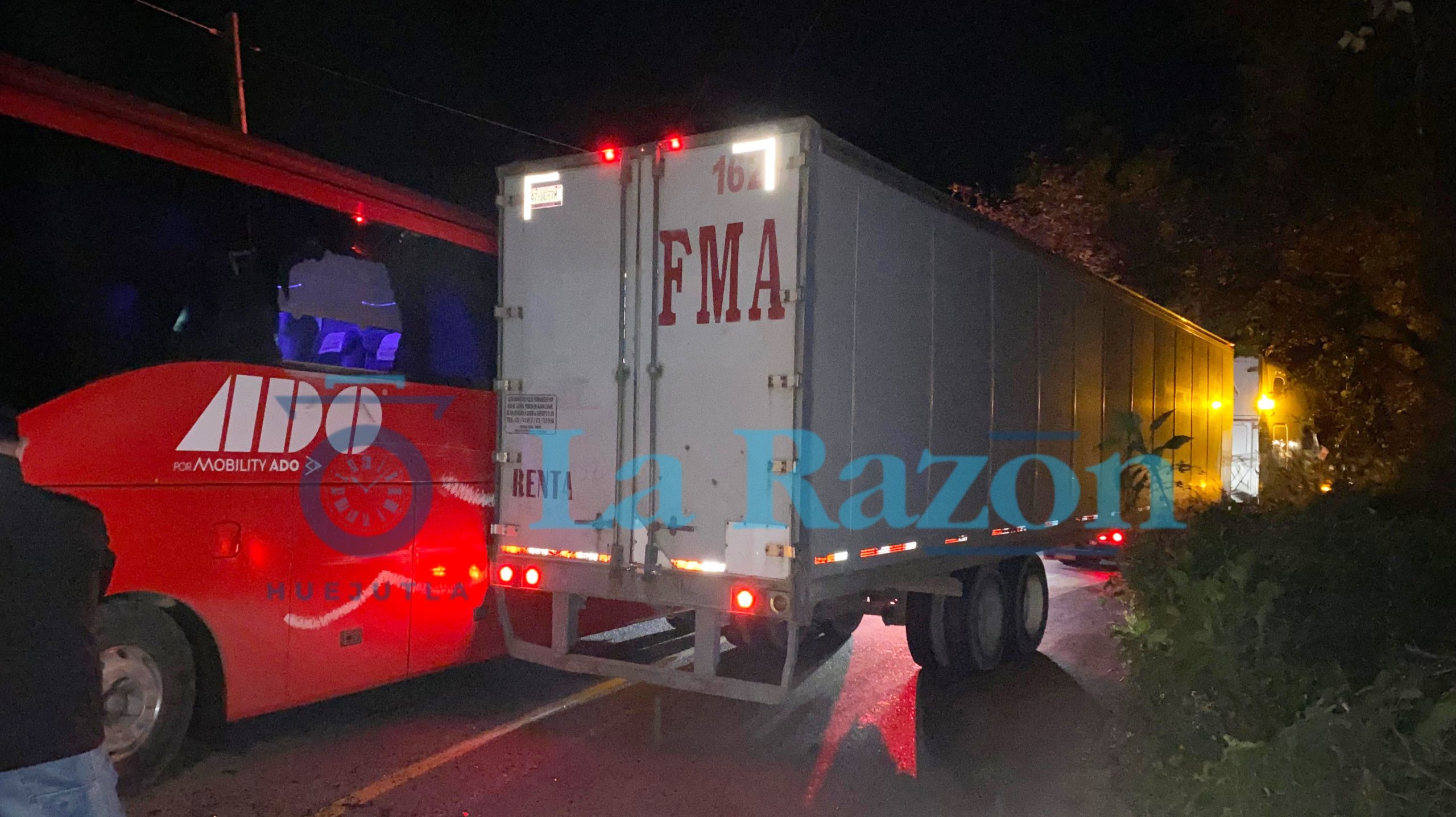 Lolotla, Hgo.— Durante la madrugada de este domingo, alrededor de las 02:00 horas, se registró un accidente entre un autobús de la línea ADO y un tráiler sobre la carretera federal México–Tampico, en el tramo previo a llegar a Ixtlahuaco, con dirección a Pachuca.
