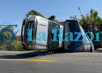 Platón Sánchez, Ver.- La mañana de este martes, una camioneta cargada con bultos de alimento para animales volcó sobre la...