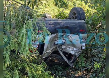 Platón Sánchez, Ver.- Ileso resultó un conductor y su acompañante tras perder el control de su vehículo y volcar de ...