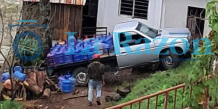 Tlanchinol, Hgo.- La tarde de ayer, lunes, una camioneta dedicada al reparto de garrafones de agua protagonizó un aparatoso incidente en el barrio San José, en Tlanchinol, luego de que el conductor perdiera el control al descender por una calle con fuerte inclinación.