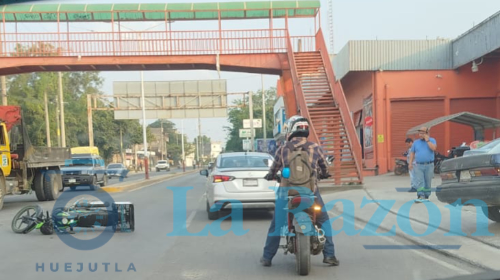 Huejutla, Hgo.- Un repartidor de conocida pollería terminó en el hospital la tarde de este miércoles, luego de ser embestido por un auto en el bulevar central.