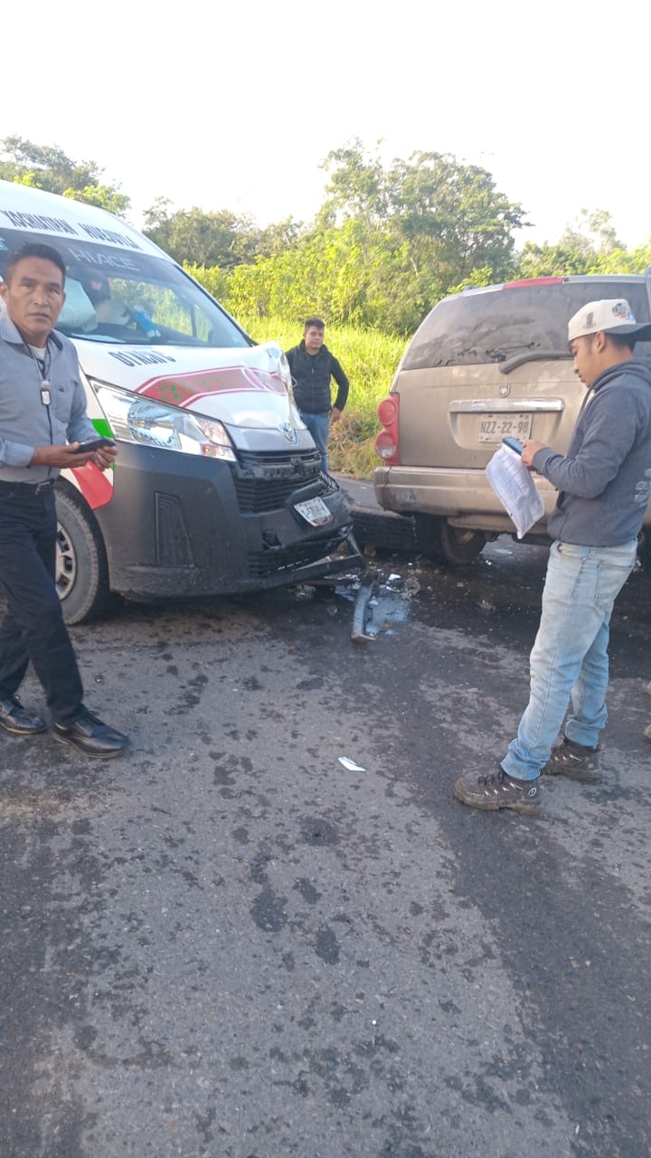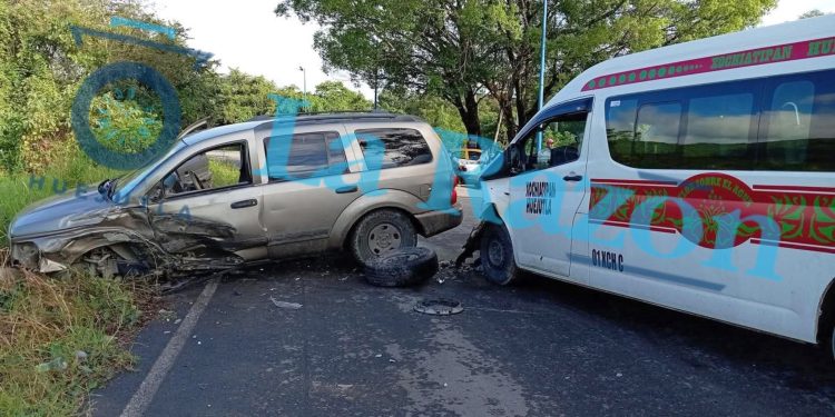 Xochiatipan, Hgo.— Durante la mañana de este martes 16 de diciembre se registró un percance carretero en el que se vieron involucrados una unidad del transporte público tipo combi, que cubría la ruta Xochiatipan–Huejutla, y una camioneta Dodge Durango, color café.