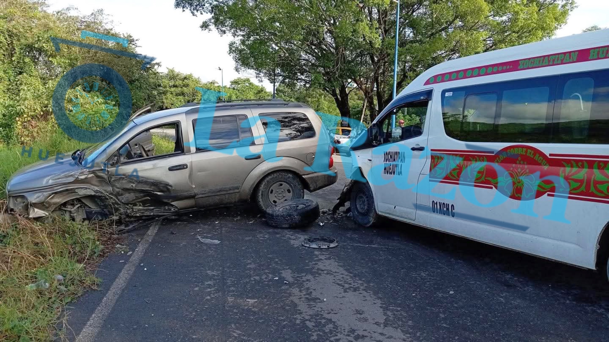 Xochiatipan, Hgo.— Durante la mañana de este martes 16 de diciembre se registró un percance carretero en el que se vieron involucrados una unidad del transporte público tipo combi, que cubría la ruta Xochiatipan–Huejutla, y una camioneta Dodge Durango, color café.