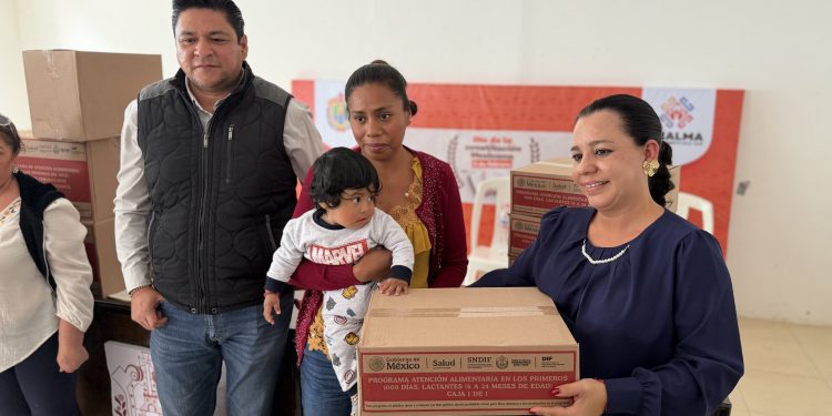 Chalma, Ver.- La presidenta del DIF Municipal de Chalma, maestra Magda Sánchez, encabezó hace unos días la entrega de despensas del programa estatal “Mil Días”, una iniciativa orientada a mejorar la nutrición de niñas y niños en sus primeros meses y años de vida.