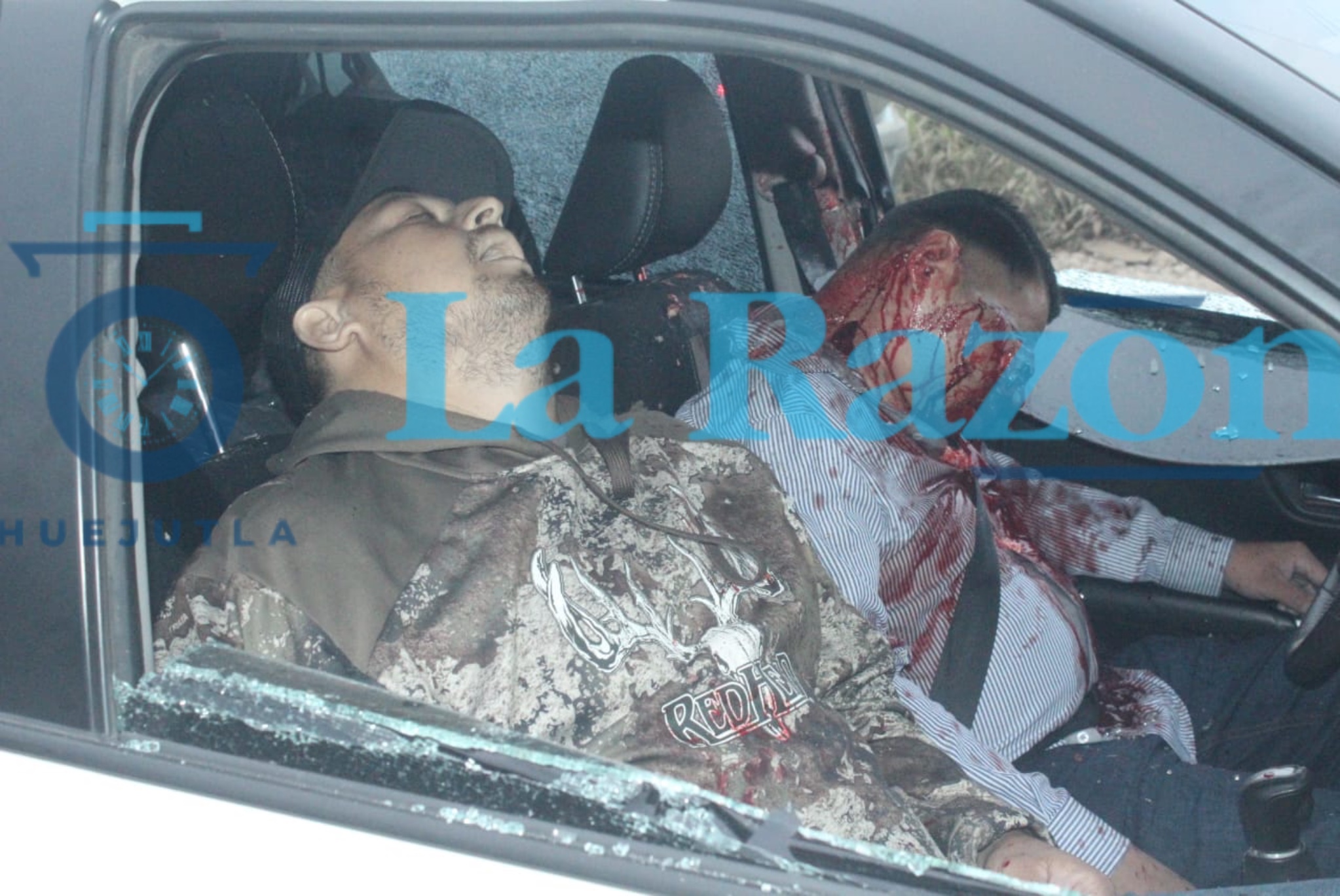 El conductor vestía una camisa de manga larga en tono gris o azul mientras que su acompañante de complexión robusta y tez blanca, portaba una gorra negra y una sudadera tipo cazadora en patrón camuflaje. Ambos presentaban impactos de bala en rostro y pecho.