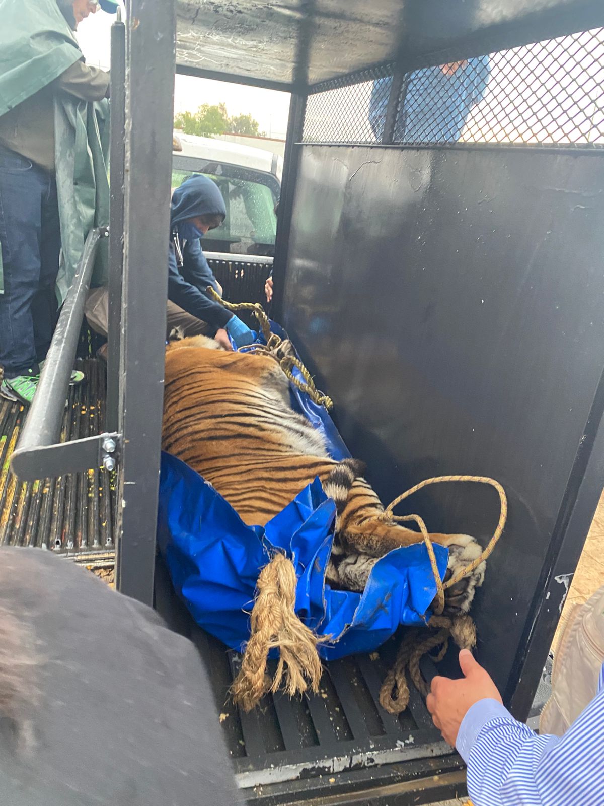 Durante el cateo se localizaron cuatro ejemplares de fauna exótica, entre ellos una pareja de leones africanos (macho y hembra), así como una pareja de tigres (macho y hembra) y algunas aves, mismas de quienes en ese momento no se acreditó su posesión legal.