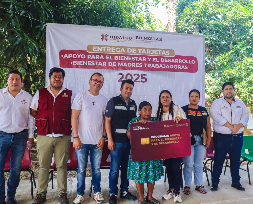 Xochiatipan, Hgo.- Este lunes, la Lic. Erika Hernández Ramírez, Presidenta Municipal de Xochiatipan, asistió a la entrega de tarjetas de los programas “Apoyo para el Bienestar y Desarrollo” y “Bienestar para Madres Trabajadoras”, impulsados por el Gobierno del Estado de Hidalgo, con el propósito de fortalecer la economía de las familias y brindar mejores oportunidades a las madres trabajadoras.