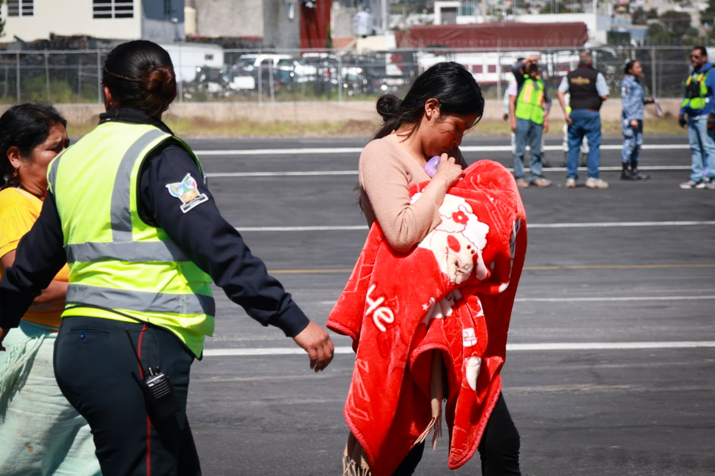 La mañana de este miércoles 15 de octubre, se logró el traslado aéreo de 10 personas más, entre las que se encuentran cinco adultos y cinco menores de edad, incluyendo a un bebé de 11 meses, provenientes de la comunidad de Xalacahuantla, Tianguistengo.