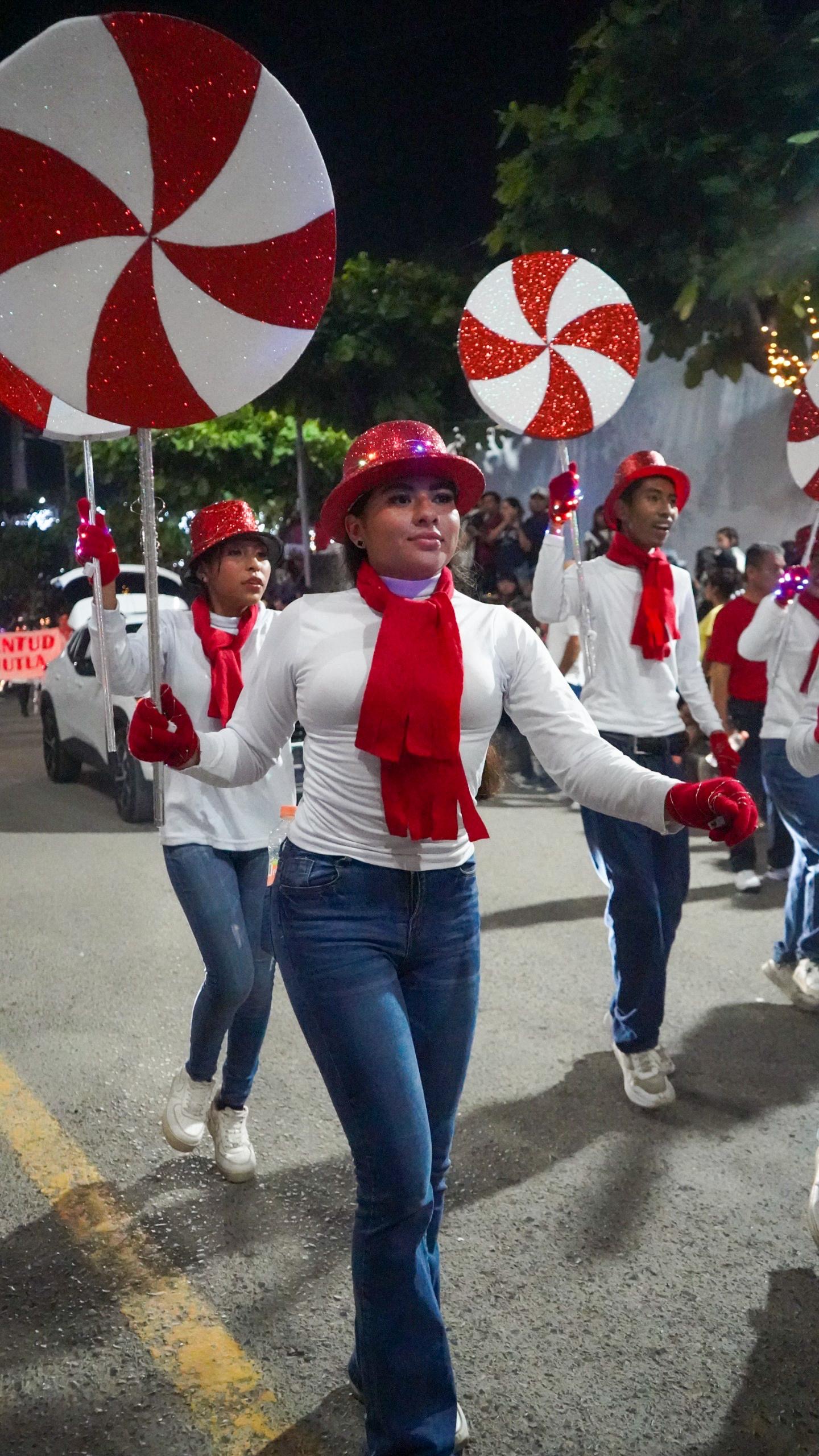 Huejutla, Hgo.- Con la participación de instituciones educativas de distintos niveles, grupos artísticos y deportistas, se llevó a cabo el Gran Desfile Navideño que engalanó los festejos decembrinos organizados por el Gobierno Municipal de Huejutla, encabezado por el Lic. José Alfredo San Román Duval, en coordinación con el Sistema DIF Huejutla, presidido por la Dra. Kristel Rodríguez Flores.