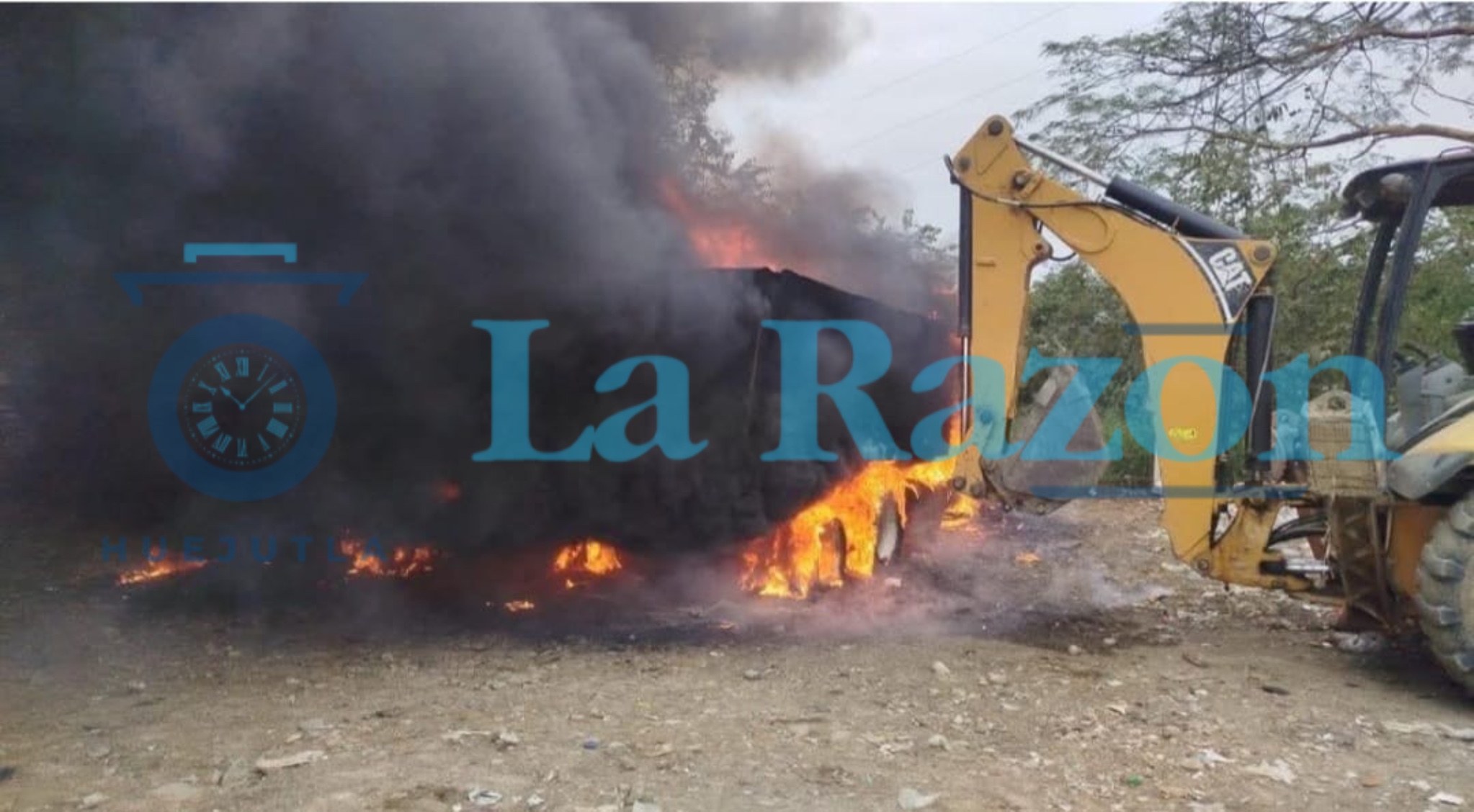 Tempoal, Ver.- Dos tractocamiones fueron incendiados por sujetos desconocidos en el relleno sanitario ubicado en la comunidad Loma del Gallo, a un costado de la carretera federal 105 México–Tampico.