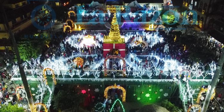 Huejutla, Hgo.- En un ambiente colorido y de gran alegría, el PresidenteMunicipal, Lic. José Alfredo San Román Duval y la Dra. Kristel Rodríguez Flores, Presidenta del Sistema DIF Huejutla, encabezaron el encendido del Pino y la Villa Navideña, instalados en la zona Centro de la ciudad, acompañados de familiares, amigos y cientos de asistentes que se reunieron para dar la bienvenida a esta época festiva.