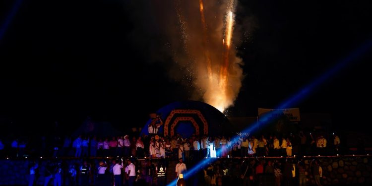 Huejutla, Hgo.- Con un llamado a disfrutar plenamente de la fiesta del Xantolo, el Lic. José Alfredo San Román Duval, presidente municipal, en compañía de su distinguida esposa, la Dra. Kristel Rodríguez Flores, presidenta del Sistema DIF Huejutla, encabezó la ceremonia de corte del listón inaugural del magno escenario que se convertirá en el epicentro de los festejos de Día de Muertos de este año 2025, una celebración que —dijo— debe ser con causa, en razón de las recientes lluvias que afectaron a diversas comunidades de municipios hermanos.