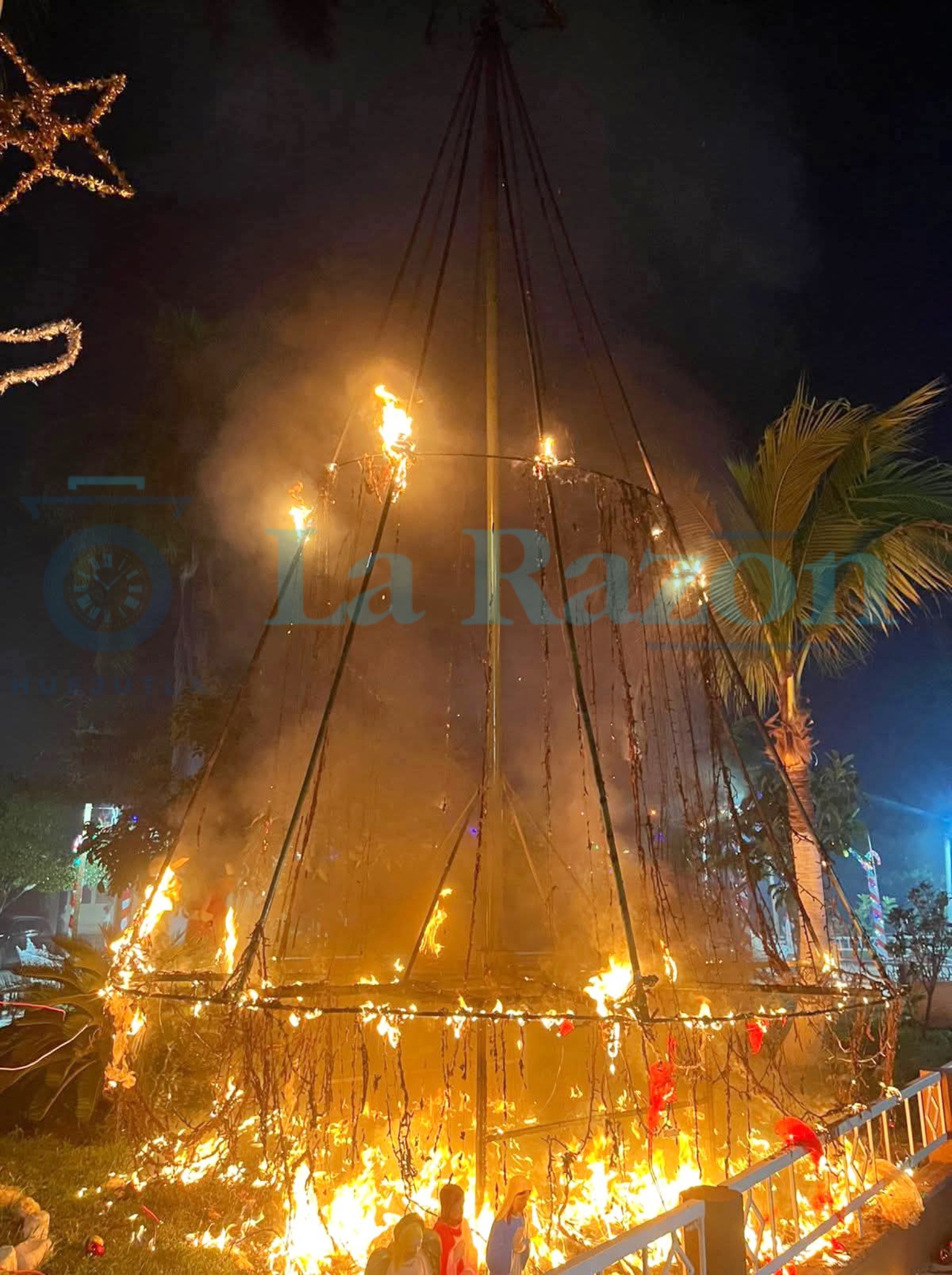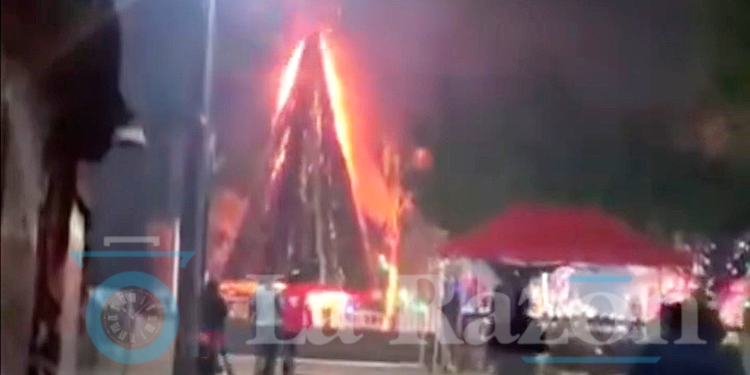 El siniestro inició poco después de la medianoche, cuando la estructura comenzó a arder rápidamente. Las llamas consumieron por completo el pino decorativo y alcanzaron también una palmera cercana, lo que generó alarma entre los vecinos.