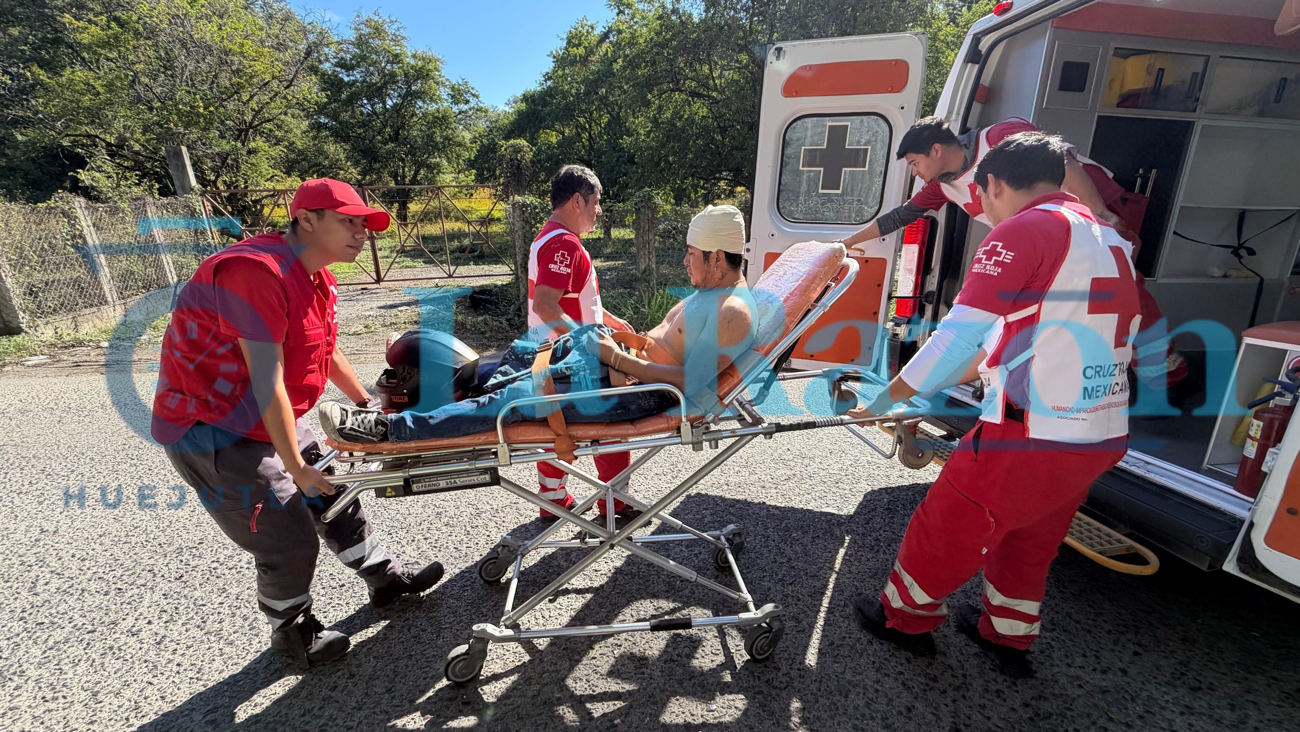 Paramédicos de la Cruz Roja Mexicana brindaron atención al motociclista identificado como Juan N. H. B., vecino de la comunidad de Chililico, quien sufrió golpes en el cráneo y diversas partes del cuerpo, por lo que fue trasladado al Hospital Regional de Huejutla.