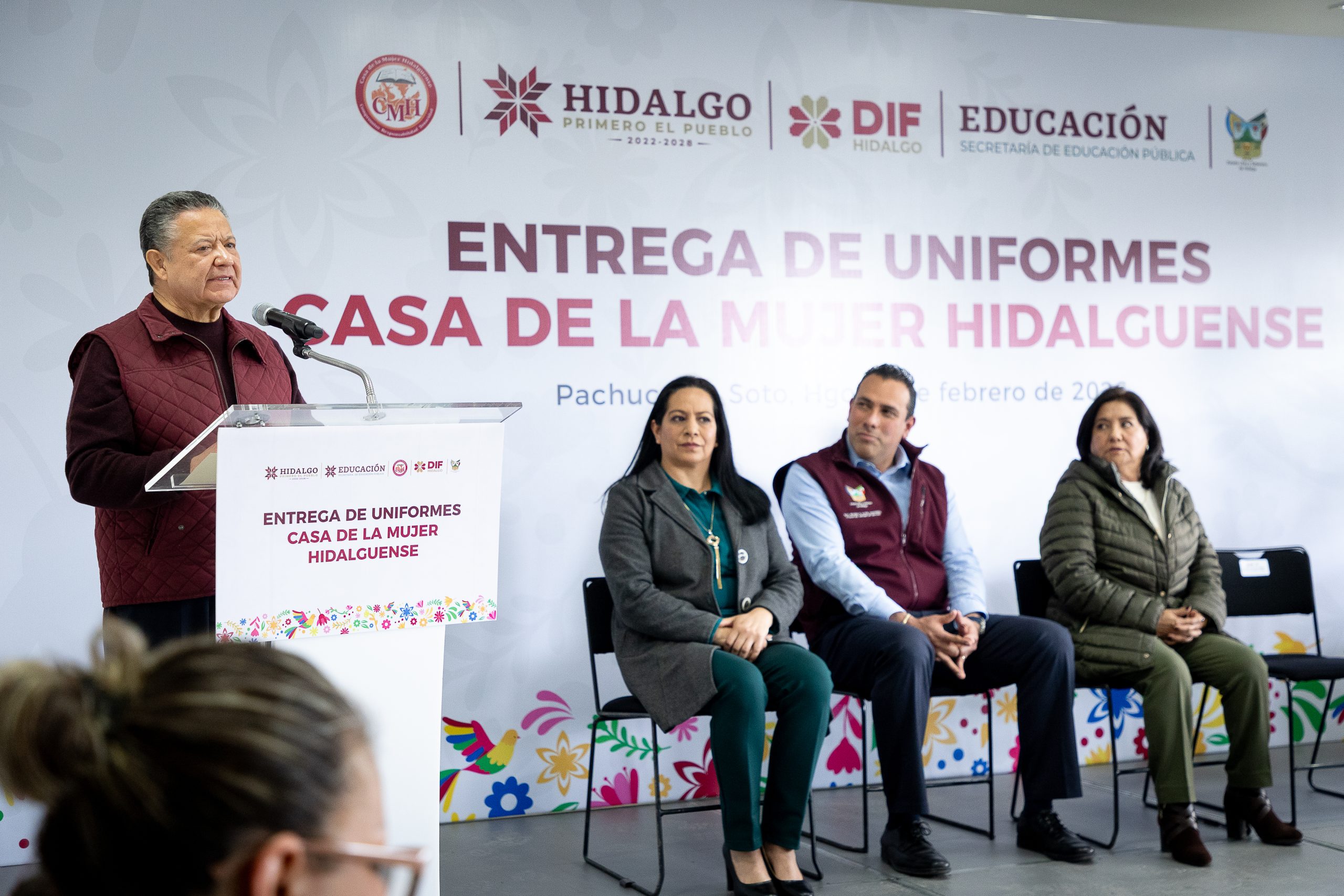 En compañía de la presidenta del Patronato del Sistema DIF Hidalgo, Edda Vite Ramos, así como de autoridades estatales, el gobernador encabezó la entrega simbólica de uniformes escolares para alumnas de diferentes Centros de Asistencia Social, en las instalaciones de la Casa de la Mujer Hidalguense, un espacio emblemático de formación, protección y acompañamiento para este sector.
