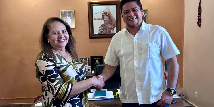 Chalma/Platón Sánchez, Ver.- En un ejercicio de coordinación interinstitucional, la presidenta municipal de Platón Sánchez, Profra. Margarita del Ángel Vera, y el presidente municipal de Chalma, Prof. Jilly Edson Argüelles Martínez, sostuvieron una reunión de trabajo acompañados por sus equipos directivos.