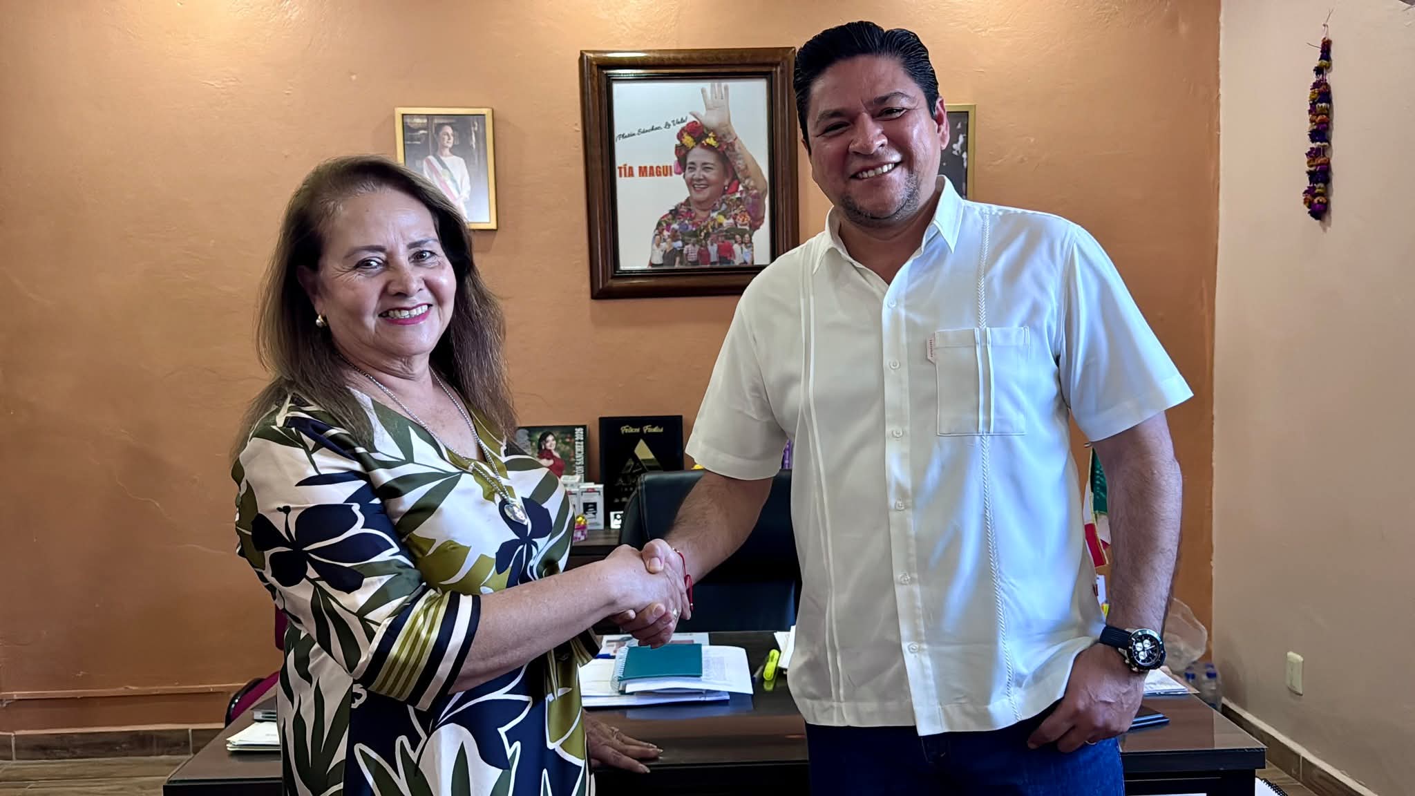 Chalma/Platón Sánchez, Ver.- En un ejercicio de coordinación interinstitucional, la presidenta municipal de Platón Sánchez, Profra. Margarita del Ángel Vera, y el presidente municipal de Chalma, Prof. Jilly Edson Argüelles Martínez, sostuvieron una reunión de trabajo acompañados por sus equipos directivos.