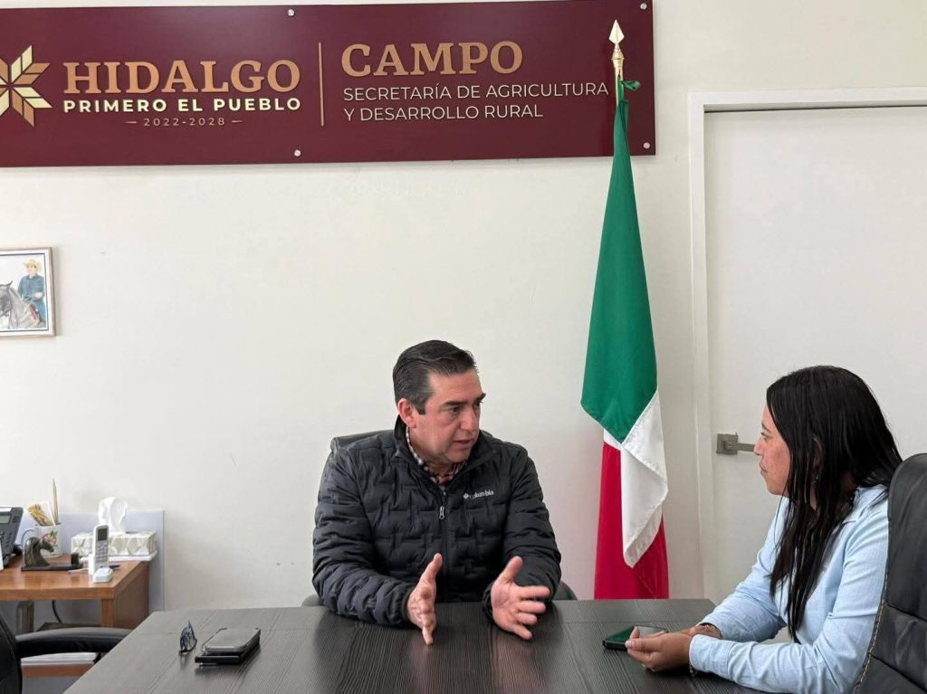 Xochiatipan, Hgo. – La Presidenta Municipal de Xochiatipan, Lic. Erika Hernández Ramírez, sostuvo una reunión de trabajo con Napoleón González Pérez, titular de la Secretaría de Agricultura y Desarrollo Rural Hidalgo, con el objetivo de sumar esfuerzos y alinear proyectos que fortalezcan el campo y generen mayores oportunidades para las familias del municipio.