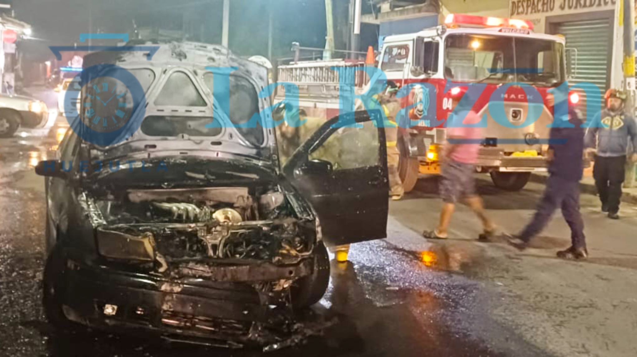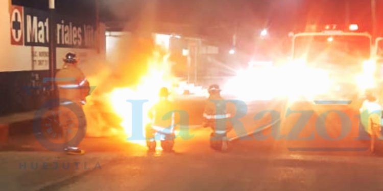 Huejutla, Hgo.— La tranquilidad de la noche se rompió este miércoles 12 de noviembre, cuando un vehículo comenzó a arder en llamas sobre la calle México, esquina con Toltecas, en la colonia Colalambre, provocando una rápida movilización de policías y bomberos alrededor de las 22:30 horas.