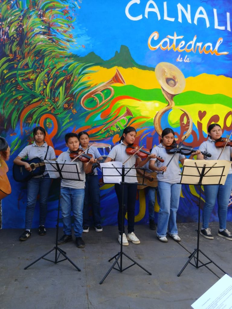 En este evento se realizó la intrega de intrumentos de banda de viento, instrumentos de trios Huastecos, instrumentos para la escuela de música tradicional Huasteca, apoyos a las danzas y trapiches.