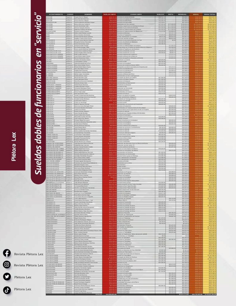 Tlanchinol.– Un informe de conocido medio destapó una lista de 165 funcionarios hidalguenses que cobran dos salarios a costa del erario, práctica que la contraloría estatal advierte como posible delito.