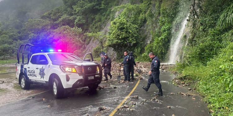 Tras recibir una llamada en la línea de Emergencias 911, donde reportaban un derrumbe sobre dicha vía, elementos de la Policía Estatal de la delegación de Tlanchinol, se trasladaron al lugar indicado para, inicialmente, realizar labores preventivas y desviar el tránsito, con la finalidad de evitar accidentes.
