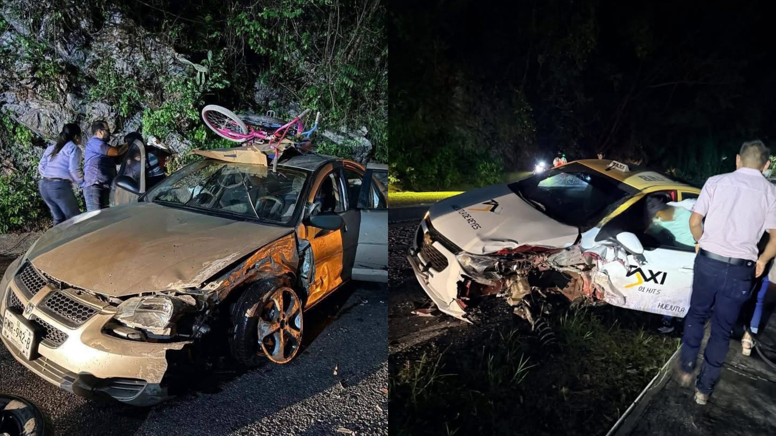 De acuerdo con los primeros reportes, el percance ocurrió cuando un taxi procedente de Huejutla, marca Chevrolet Aveo, presuntamente conducido por personas en estado de ebriedad, se impactó contra un vehículo particular en el que viajaba una familia.