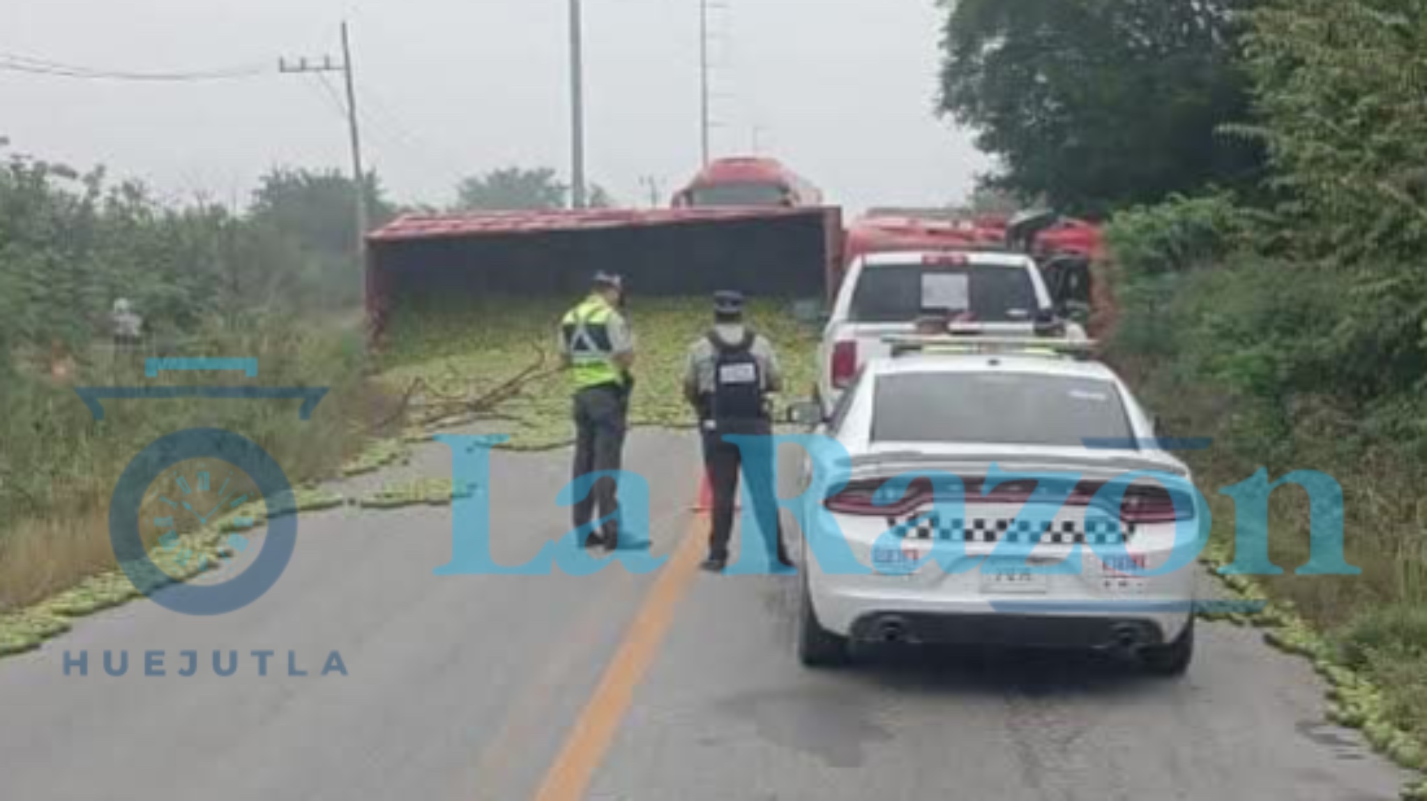 El Higo, Ver.- Durante la madrugada de este viernes se registró un accidente carretero sobre la vía Pánuco–Tempoal, a la altura del rancho Los 14, donde un camión que transportaba naranjas volcó, interrumpiendo el paso vehicular.