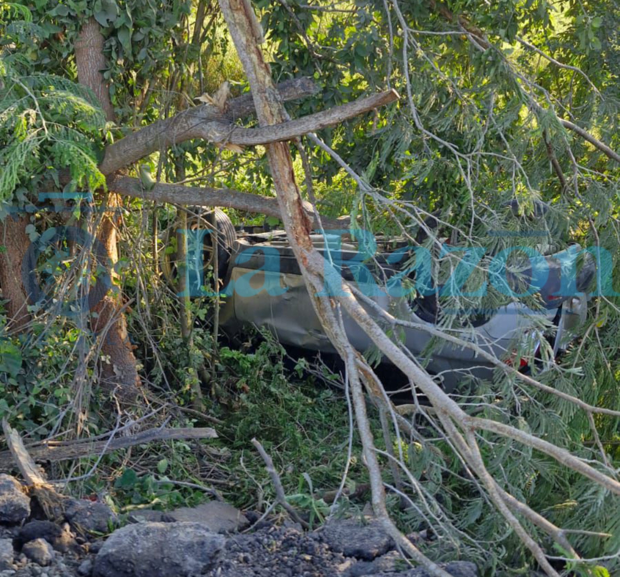 El vehículo Chevrolet Trax de color gris, terminó entre el monte con los neumáticos hacia arriba; el conductor y su acompañante resultaron ilesos.