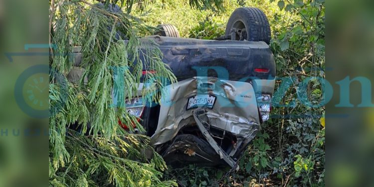 Platón Sánchez, Ver.- Ileso resultó un conductor y su acompañante tras perder el control de su vehículo y volcar de manera aparatosa.
