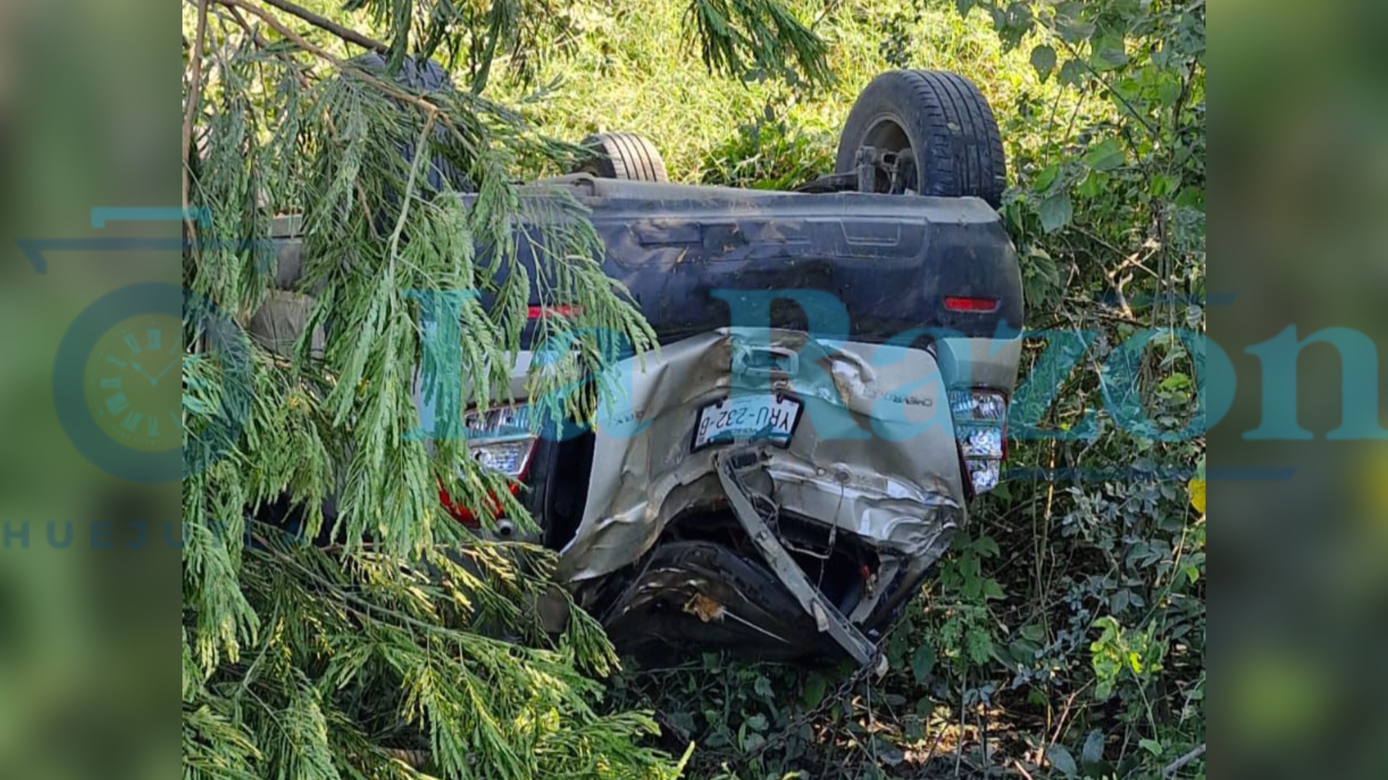 El vehículo Chevrolet Trax de color gris, terminó entre el monte con los neumáticos hacia arriba; el conductor y su acompañante resultaron ilesos.